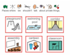 A printable communication board with a 3x3 grid.